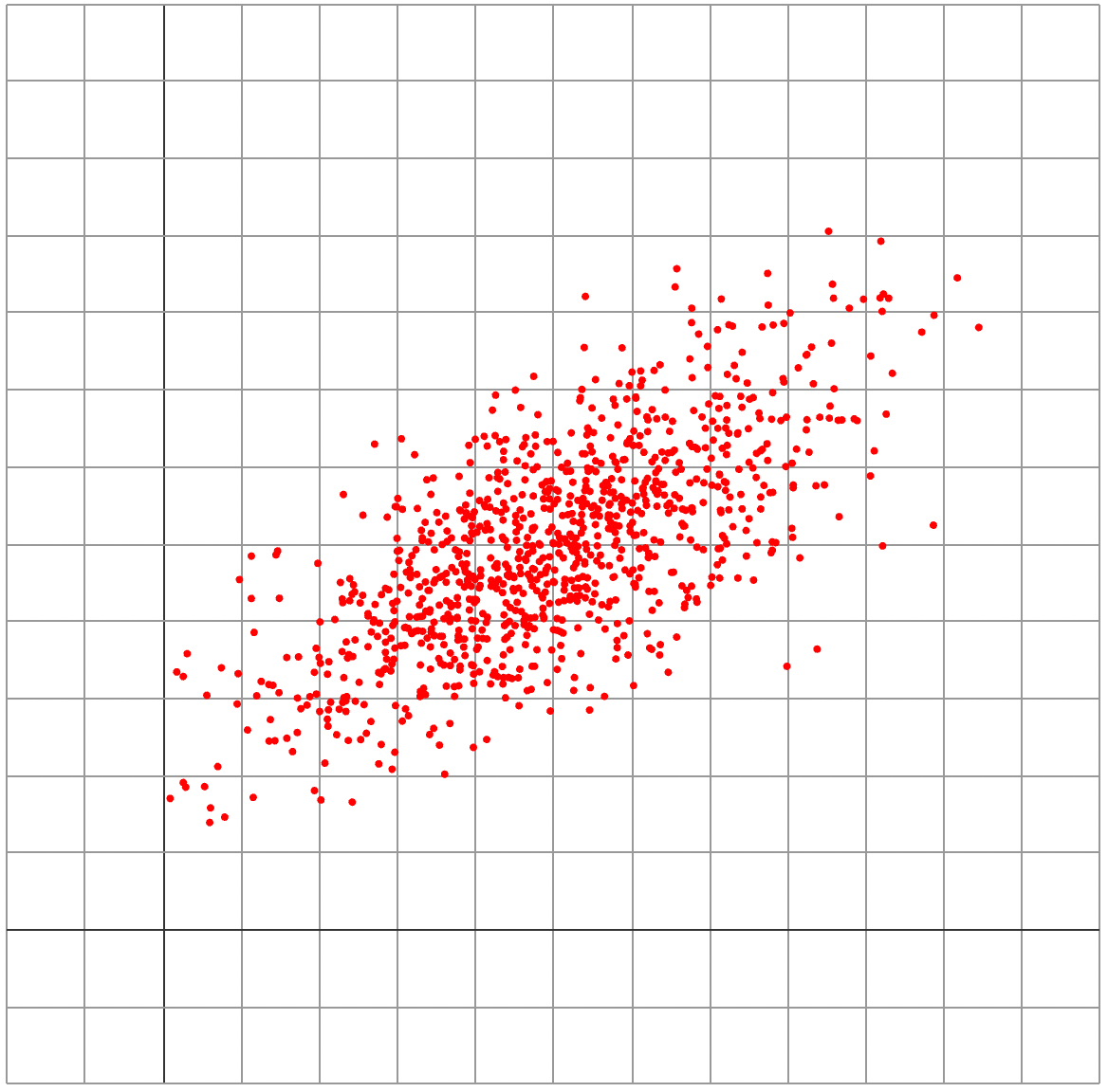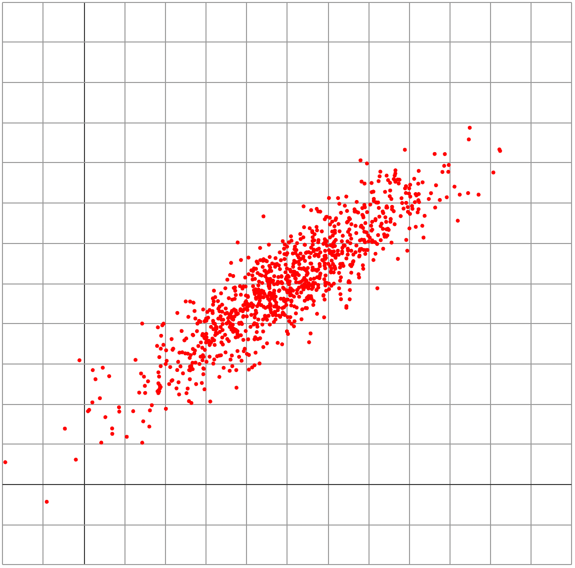 The three simulations below illustrate three potential values for the heritability of IQ, 30%, 50%, and 80%. In each case, the dots represent 1000 random people, each placed according to their genetic potential for IQ (horizontal axis) and actual IQs (vertical axis). Heritability measures how close the dots are to fitting on a line. Mathematically, it is defined as the R^2 of the linear regression.